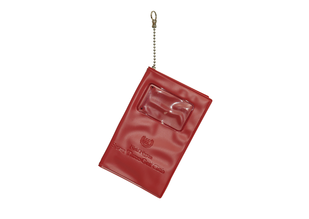 記念品PV製のスコアブックカバーにロゴマークを型押し、ボールチェーンはリング付きのもので制作。
