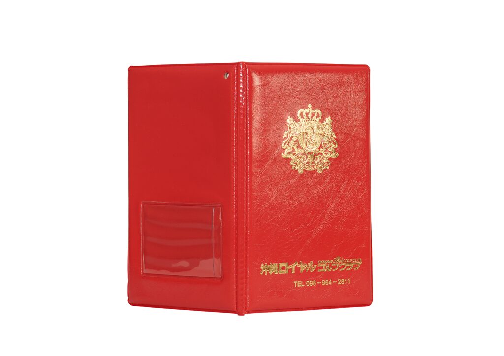 記念品革素材にゴールドでロゴをプリントしたスコアブックカバーを制作しました。