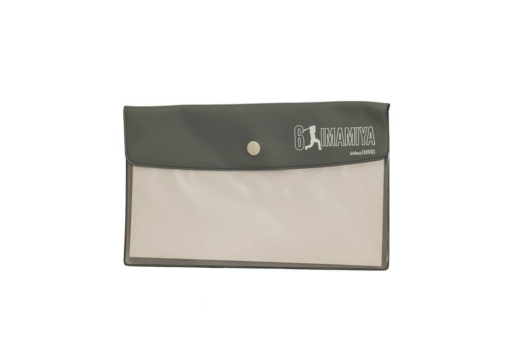 記念品選手のシルエット、背番号、名前をデザインしたオリジナルのビニールポーチです。